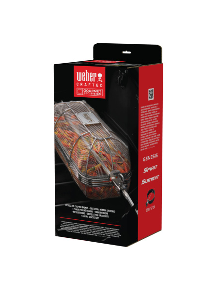Il pratico cestello a maglia fine apre un nuovo mondo di possibilità gastronomiche, consentendo di cucinare alimenti difficilmente infilzabili sullo spiedo tradizionale. Prepara croccanti patatine fritte o delizia i tuoi bambini con Popcorn cucinati direttamente sulla griglia.