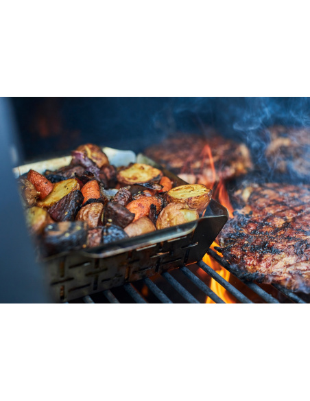 Il modo più facile per cuocere le verdure o saltare la carne sul barbecue. in acciaio INOX lavabile in lavastoviglie.