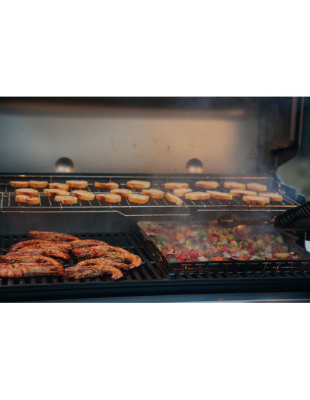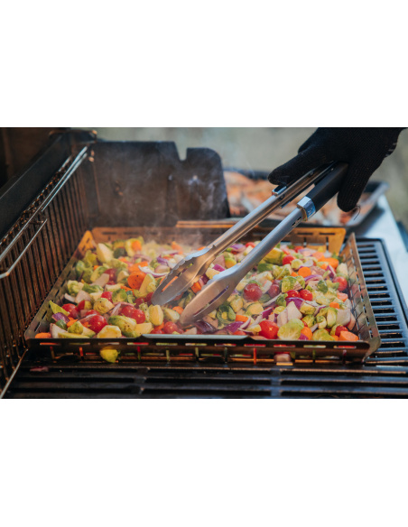 Ideale per cuocere cibi piccoli e dalicati senza farli cadere nella griglia. Dotato di un bordo alto per girare facilmente i cibi. I fori hanno una forma speciale che garantisce una distribuzione efficiente del calore. Realizzato in acciaio INOX e lavabile in lavastoviglie.
