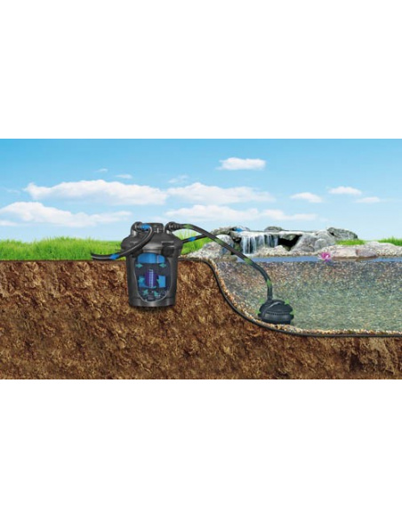 - Indicato per laghetti con un volume fino a 15000 l e senza pesci o fino a 7500 l con pesci