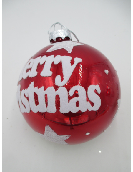 Pallina di Natale, Sfera di Vetro, 10 Cm, Rosso/Bianco Laccato, Scritta in Velluto