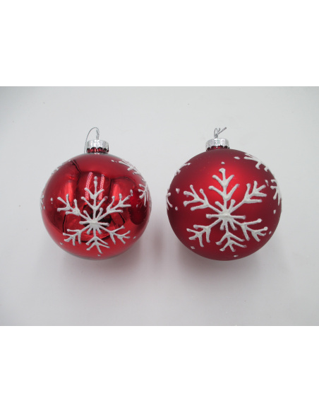 Pallina di Natale, Sfera di Vetro, 8 Cm, Rosso, Decorazione Fiocco di Neve, Smaltata o Opaca