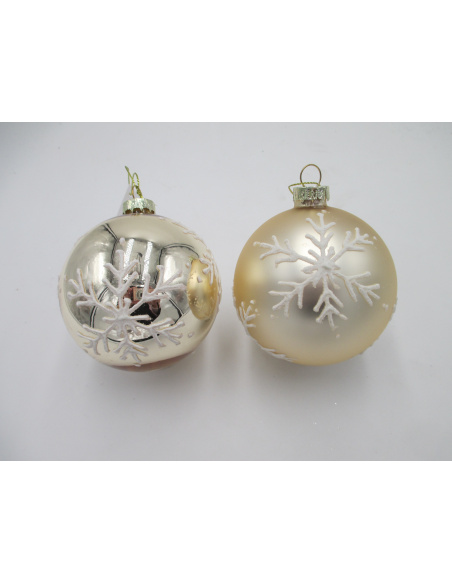 Pallina di Natale, Sfera di Vetro, 8 Cm, Oro, Decorazione Fiocco di Neve, Smaltata o Opaca