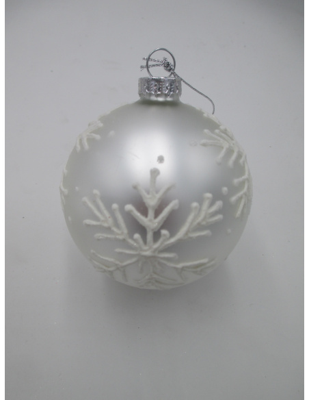 Pallina di Natale, Sfera di Vetro, 8 Cm, Argento, Decorazione Fiocco di Neve, Smaltata o Opaca