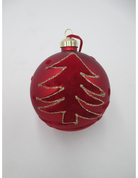 Pallina di Natale, Sfera di Vetro, 8 Cm, Rosso Opaco con Decorazione, Assortite