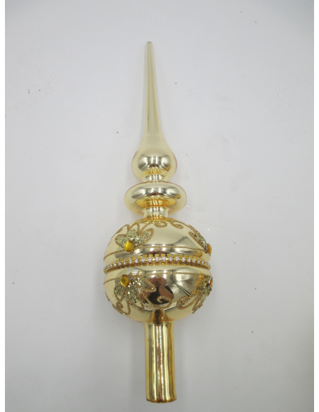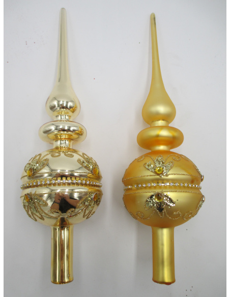 Puntale Natalizio di Vetro, 31 cm, Oro con Decorazione, Assortiti
