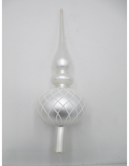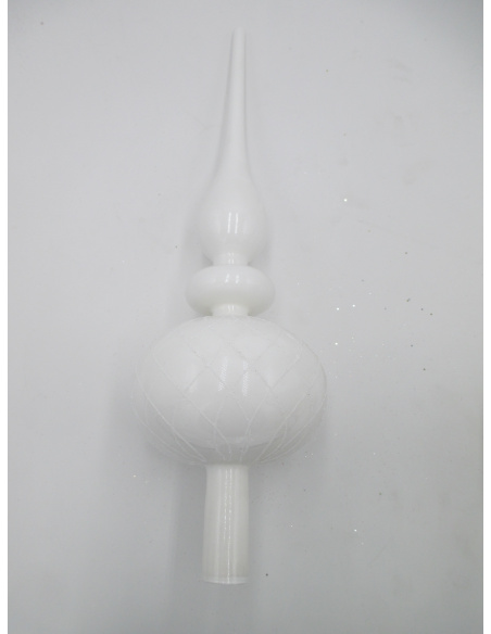 Puntale Natalizio di Vetro, 36 cm, Bianco con Decorazione Glitter Bianco, Assortiti - Lucido o Opaco