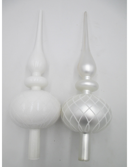 Puntale Natalizio di Vetro, 36 cm, Bianco con Decorazione, Assortiti