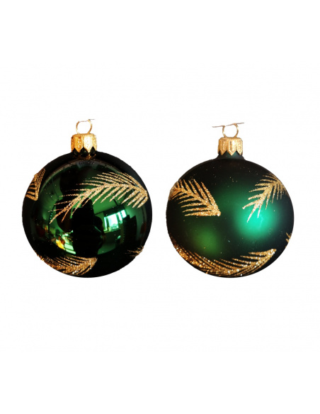 Pallina di Natale, Sfera di Vetro, 8 Cm, Verde Agrifoglio con Decorazione, Assortite