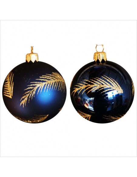 Pallina di Natale, Sfera di Vetro, 8 Cm, Blu Notte con Decorazione, Assortite