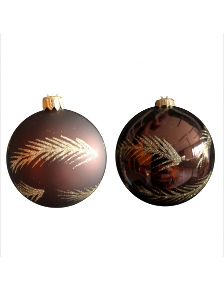 Pallina di Natale, Sfera di Vetro, 8 Cm, Marrone con Decorazione, Assortite