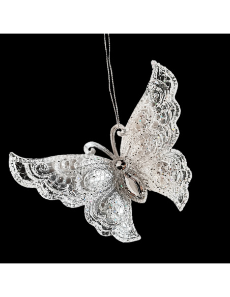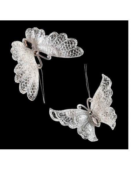 Farfalla con Gemma, Acrilico Bianco Perlato, Glitter Iridescente, 10 cm, Assortito