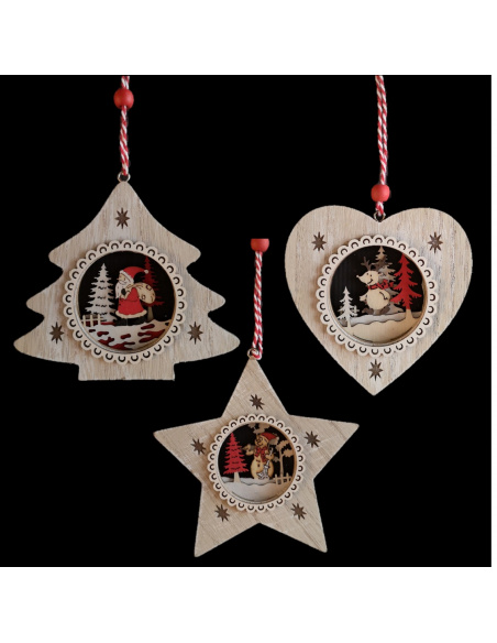 Ornamento con Paesaggio e Personaggio, Legno, 11 cm, Assortita
