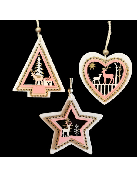 Formina con Paesaggio Natalizio, Legno Rosa e Bianco, 12 cm, Assortita