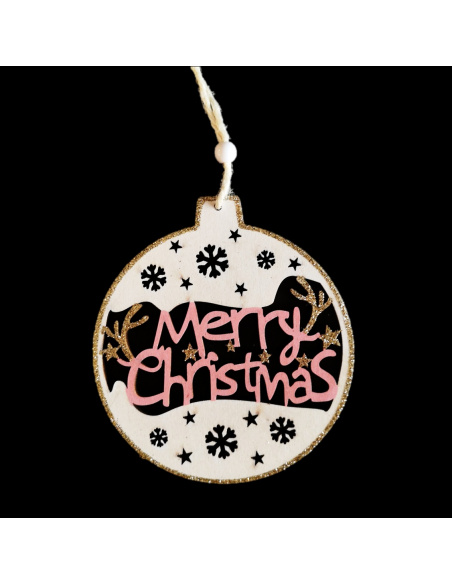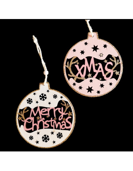 Formina Pallina Merry Christmas, Legno Rosa e Bianco, 11 cm, Assortita