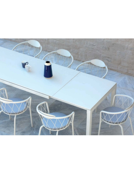 Tavolo misura 180x90 che si allunga a 250cm, interamente realizzato in ferro zincato inattaccabile dagli agenti atmosferici, sedie non incluse