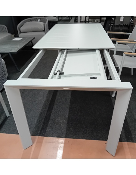 tavolo allungabile realizzato in alluminio verniciato a polveri colore grigio con sfumatura azzurra