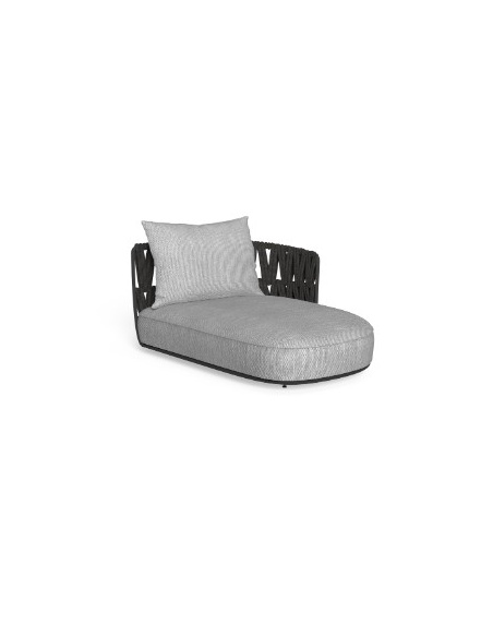 Modulo per salotto modello Swipe realizzato in alluminio verniciato a polveri e corda sintetica, i cuscino sono sfoderabili realizzati con imbottitura quik dry foam idonea all'ambienTe esterno