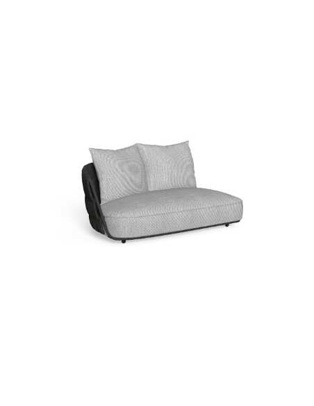 Modulo per salotto modello Swipe realizzato in alluminio verniciato a polveri e corda sintetica, i cuscino sono sfoderabili realizzati con imbottitura quik dry foam idonea all'ambienTe esterno