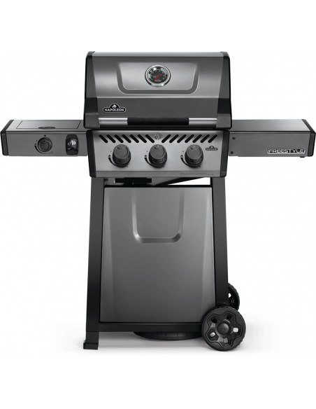 Il barbecue a gas propano Freestyle 365 è un barbecue compatto con caratteristiche premium e un valore imbattibile. Si accende grazie al sistema di accensione istantanea JETFIRE che accende facilmente, ogni volta, i bruciatori principali con un getto di fiamma. Ottieni una rosolatura perfetta sulle griglie di cottura in ghisa smaltata porcellanata mentre prepari i tuoi contorni sul fornello laterale. Tre bruciatori in acciaio inossidabile forniscono calore che può essere facilmente controllato tramite manopole ergonomiche e monitorato dall'indicatore di temperatura integrato. Le robuste ruote permettono a questo barbecue di andare dove si trova l'azione, mentre i ripiani laterali facili da piegare, dotati di ganci per attrezzi e un apribottiglie, assicurano che il Freestyle soddisfi il tuo stile di vita e il tuo spazio.