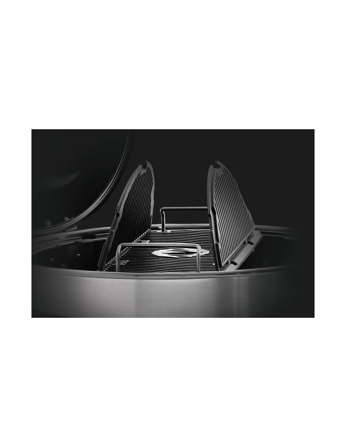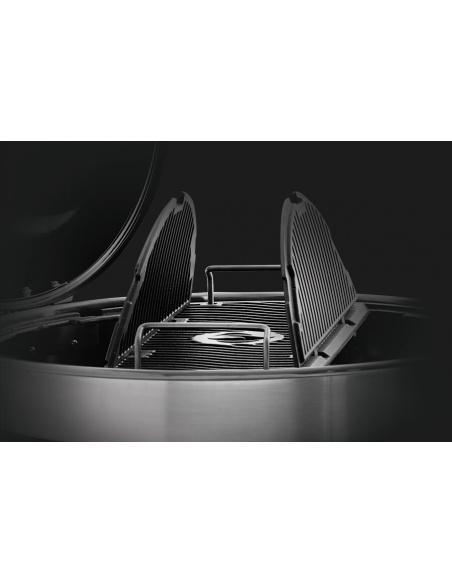 Inizia a grigliare con l'originale combustibile per grigliate a infrarossi utilizzando la griglia a carbone PRO di Napoleon. Saprai che è un Napoleone con le iconiche griglie di cottura WAVE™ per quei caratteristici segni di cottura. Le griglie di cottura in ghisa rivestite in porcellana, incernierate e di facile accesso consentono di aggiungere più carbone o trucioli di legno senza sforzo, mentre tre altezze di cottura e la gestione magistrale del flusso d'aria forniscono un controllo preciso della temperatura. Il sistema PRO Air Control migliorato aumenta la precisione dell'aria e della temperatura. Un grande diffusore di calore in acciaio inossidabile solleva il carbone dalla ciotola del bollitore irradiando uniformemente il calore attraverso la griglia e dirigendo il carbone esaurito verso il raccogli cenere. All'esterno, questa griglia brilla. Il corpo in acciaio rivestito in porcellana resiste agli elementi. Il coperchio è dotato di una cerniera sfalsata che si apre, consentendo l'accesso a tutta la superficie di cottura mantenendo le mani lontane dal calore.