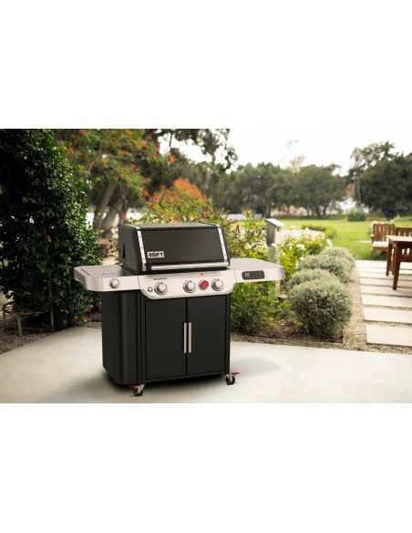 Un Barbecue dalle prestazioni superiori con 3 Bruciatori, Area di rosolatura per un calore extra e fornello laterale. Design accattivante e finiture premium. tecnologie Weber Connect integrata con guide di cottura passo passo. Ampi ripiani laterali, armadietto chiuso e scomparto laterale per riporre gli accessori Barbecue. Illuminazione dell'area di cottura e delle manopole.