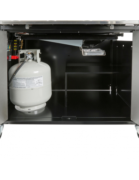 Un Barbecue dalle prestazioni superiori con 4 Bruciatori, Area di rosolatura per un calore extra e fornello laterale. Design accattivante e finiture premium. Ampi ripiani laterali, armadietto chiuso e scomparto laterale per riporre gli accessori Barbecue.