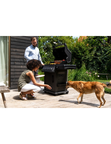 La griglia a gas propano Napoleon Rogue® PHANTOM 425 con verniciatura nero opaco, fornello laterale a infrarossi, Bruciatore posteriore e una griglia resistente in acciaio inossidabile. Dotata di tre bruciatori principali, un bruciatore girarrosto posteriore e un coperchio superiore alto, questa griglia ha tutto il necessario per creare pasti gourmet. Scotta bistecche in stile ristorante sulla stazione di cottura integrata, mentre gli ampi ripiani laterali offrono molto spazio per la preparazione.
