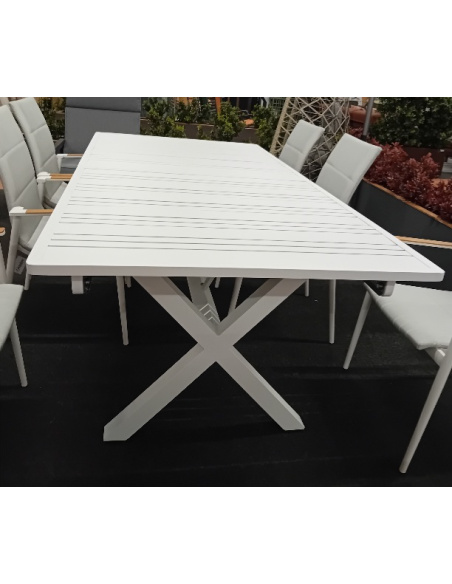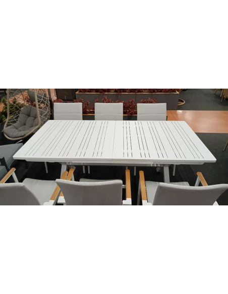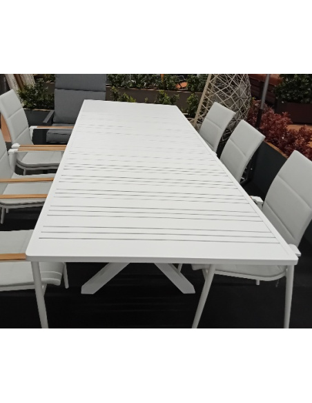 Tavolo da giardino realizzato interamente in alluminio verniciato a polveri colore bianco, estensibile con allungo automatico, disponibile anche nel colore antracite.