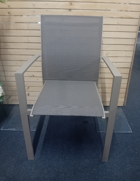 Sedia da giardino realizzata in alluminio verniciato a polveri con schienale e seduta in textilene