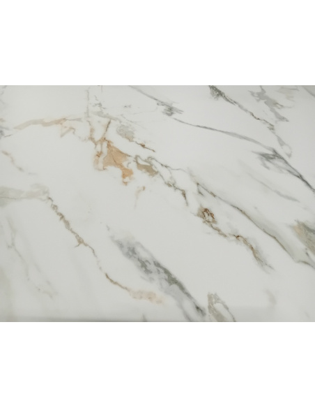 Tavolo con struttura e gambe coniche in alluminio verniciato a polveri, il piano è in pietra sintetica marmorizzata, misura 280x100