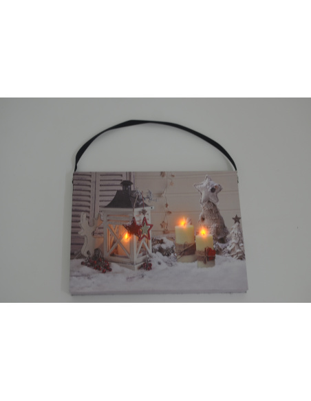 Quadro Luminoso, Candele e lanterna bianca 20x15 cm