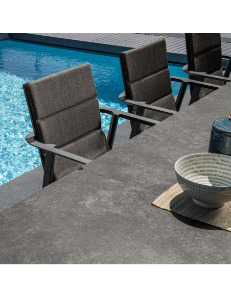 l tavolo è allungabile fino a 260 cm con estensione in alluminio compresa nella struttura e fino a 320 cm con l’aggiunta di un pannello extra in ceramica. Si abbina perfettamente con le sedute da pranzo Milo per creare un arredamento romantico, moderno ma senza tempo.