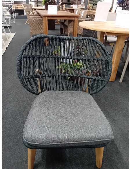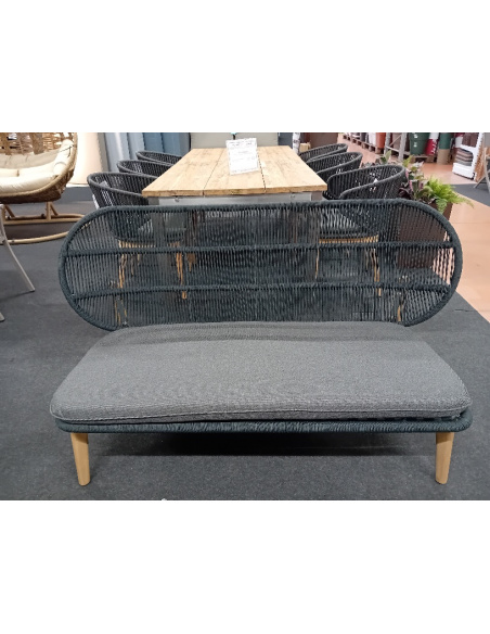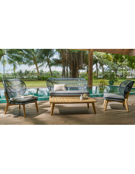 Salotto realizzato in acacia e corda sintetica intrecciata, ottima per resistenza agli agenti atmosferici.