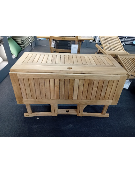 Tavolo in teak levigato misura 120x90cm abbattibile ai due lati,
