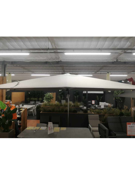 OMBRELLONE A BRACCIO LATERALE DI MISURA 4X4 METRI, CON STRUTTURA IN ALLUMINIO DI COLORE ANTRACITE, PRATICA MANOVELLA PER L'APERTURA E LA CHIUSURA, TELO NOVASUN DA 250 GR. DI ECCEZIONALE QUALITA' CON CAMINO ANTIVENTO, PRATICA PEDALINA PER PERMETTERE LA ROTAZIONE DI 360°