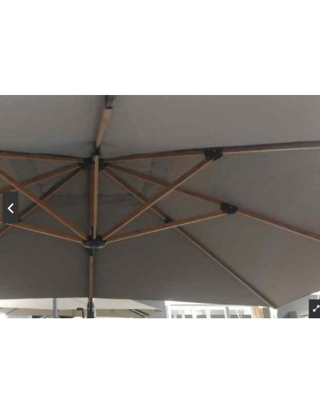 OMBRELLONE A BRACCIO LATERALE DI MISURA 4X4 METRI, CON STRUTTURA IN ALLUMINIO DECORATA EFFETTO LEGNO , PRATICA MANOVELLA PER L'APERTURA E LA CHIUSURA, TELO NOVASUN DA 250 GR. DI ECCEZIONALE QUALITA' CON CAMINO ANTIVENTO, PRATICA PEDALINA PER PERMETTERE LA ROTAZIONE DI 360°.