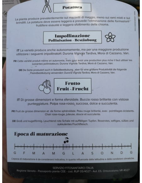 FRUTTO ROSSO BRILLANTE, PERIODO DI MATURAZIONE INIZIO/META' GIUGNO