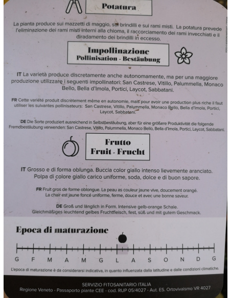FRUTTO GIALLO LIEVEMENTE SFUMATO DI ARANCIO, PERIODO DI MATURAZIONE INIZIO/META' LUGLIO