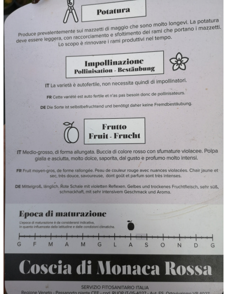 FRUTTO ROSSO CON SFUMATURE VIOLACEE, PERIODO MATURAZIONE META'/FINE AGOSTO