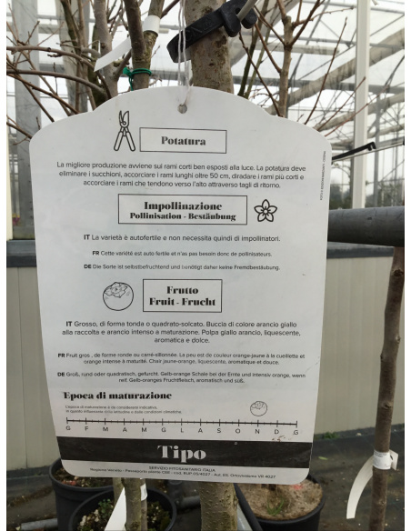 FRUTTO GIALLO-ARANCIO CHE DOPO LA RACCOLTA DIVENTA ARANCIO, PERIODO DI MATURAZIONE FINE FINE OTTOBRE - INIZIO NOVEMBRE